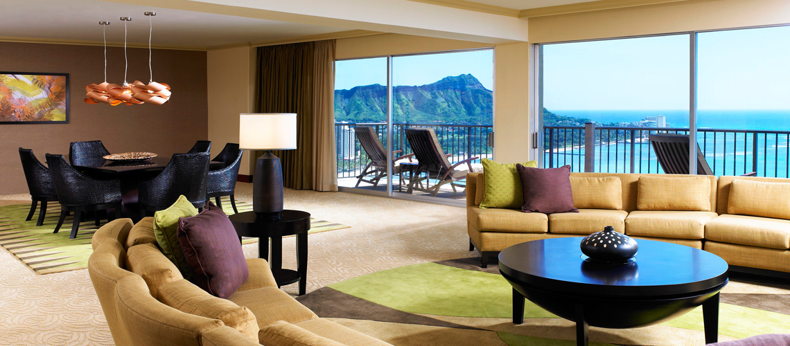 お部屋に入って、まず、ラナイに出ると、海とダイヤモンドヘッドというハワイそのもののような景色。「あぁ、来てよかった!」と幸せな気持ちになりました。