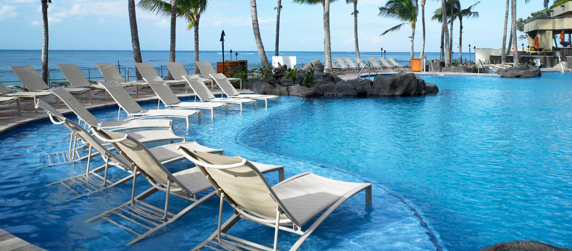 そのまま太平洋に続くようなインフィニティ・プールにキッズ大満足のヘルモア・プレイグラウンド、多彩なレストランやバー、ショップなど、家族そろって楽しめる大充実のリゾート。「未来の客室」をテーマにしたお部屋は宿泊者の利便性と快適さが重視され、日本語放送や可動式シャワー、わかりやすい説明書など、日本人旅行者に嬉しいサービスが光ります。