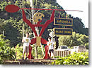 パンフレットは日本語も用意されていますが、英語のパンフレットにはショーのタイム・スケジュールが入っているので、両方もらったほうが良いと思います。それと日帰りドライブで寄るのであれば、時間がありませんので、トラム(20〜30人乗りのトロッコのようなバス)を使うと便利。我々は濃い緑と原色の花が咲き乱れる中、小鳥のさえずりを聞きながらゆっくりと滝まで歩き、飛び込みショーの開始直前に到着。フラダンスから始まり、雰囲気を盛り上げ、いよいよ飛び込みショーです。最初は「あのくらいの高さなら」というレベルですが、最終的には「そこまで上がらなくてもいいよ!」という高さには驚きました。一見の価値があります。ショーの後、遊戯具のあるポイント(ジャングルトレック)へ移動して、親はしばし休憩。日本にもあるような遊具で、「なにもハワイに来てまで遊ばなくても」と思いますが、親のエゴで連れ回してかわいそうですし、こういう時間も必要です。結局、昼過ぎまでワイメアバレーに居ました。そしてハレイワへ!