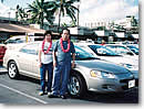 定刻通り、関西空港をテイクオフ。いつもとは違うワイドシートに慣れていないせいか、なぜか3人とも余り眠れませんでした。予定より30分程早く、ホノルル国際空港に到着。荷物受け取りに少々手間取り、そしていつもとは違う個人出口へ。出口ではスタッフの方がレイで迎えて下さいました。早速、今後の予定などの打ち合わせの後、レンタカーを借りにダラーのカウンターへ。「運転は父、ナビ役は私」です。今回の旅行で何が心配かといえば、レンタカー。海外でレンタカーを運転するのが全く初めてという事を知ったハワイの歩き方スタッフの方は、いきなりノースショアへは行かず、「ちょっと練習してみてはどうか」と言って下さったので、スタッフの方の車の誘導のもと、まずはアラモアナSCへ向かいました。