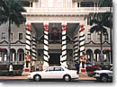 ヒルトンはワイキキの中心部から少し離れたところにあるので、まずは久々のワイキキの目抜き通りへ。ワイキキは相変わらず人が多いけど、「ハワイに来た、懐かしいなぁ」という感じにさせてくれます。ワイキキでは定番のDFSに行き、中をちょっと散策し、歯磨き粉を忘れたのでABCストアへ。ここで、飲み物や明日の朝ごはんを買いだし。とりあえずホテルに戻ると、今度はヒルトン内を散策。ヒルトンは私達が泊まったタワー以外にも、たくさんのタワーやお店が入っています。ちょうど、クリスマス・シーズンということもあり、それぞれのタワーに多彩なクリスマスの飾り付けがされていました。遠くから見ると、クリスマス・ツリーは日本で見るものと同じようですが、近くで見ると何とオーナメントが鳥(それも孔雀)だったり、魚だったり、ウクレレだったり、といかにもハワイらしくなっていました。ヒルトン内には、なぜか動物やあまり見たことのない植物もたくさんあります。中でも、驚いたのはフラミンゴがいたことです。最初は「置物か」と思って見ていたら、何と動くではないですか。ピンクのフラミンゴが、こんなところで見れるとは思ってもいませんでした。