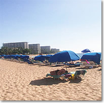 マウイ島の2日目。シェラトン・マウイ・リゾートでの朝、「せっかくだからこのホテルの部屋と景色を存分に楽しもう!」ということで、綺麗な空気を吸いながらバルコニーで朝食。昨日買っておいたマフィンとヨーグルト… たかが$5の朝食も、目の前に広がる草木と青い空、爽やかな風を感じて、リゾートを楽しむ人々の姿を眺めながら食べると、それは「どんなレストランよりも素敵な朝食!」と思えるほどでした。時間を忘れて、のんびり過ごしてしまうところでした。 |
