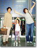 無事迎えた出発当日、この日は娘の来春入園希望の幼稚園の抽選もあり、大忙し。「ハワイを当てたこの私、幼稚園も当たらないはずが無い」という無理矢理な思い込みの勢いで見事入園決定。娘も普段どおり、元気になりました。車に乗りこみ空港に向かう頃、じわっじわっとハワイに行ける喜びが沸いてきました。 だけどもう一つ心配事が… それは娘の「飛行機酔い」です。機内アナウンスの「揺れることが予想されますので… 」という言葉にも敏感に反応し「揺れるんだよねぇー今から揺れるって言ってるんだよねー」と自ら精神的に落ち込んでいくのです。おまけに、乗ると必ず最初に、非常時脱出の方法が書いてあるパンフレットを広げ、じーっくり読み出すので縁起でもない。こっちもなんか緊張するわ… そんな娘の為、何か対策はないものかと空港の薬局を物色… 「酔い止めバンド」という手首のツボの刺激で酔いを抑えるリストバンドが目に留りましたが、少々お高いので、キティちゃんの酔い止めドリンクを買いました。その時薬局のお姉ちゃんがおまけのマスコット人形を娘にくれたので、私が「これを握っていると飛行機に乗っても酔わないんだよ、いいのもらったなぁー」とふっかけたら、以外にもこの暗示が大成功、薬を飲まなくも大丈夫でした。 (すっごい力で握っていましたけど…)