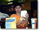 夜はここもまたお気に入りの店「デュークス」へ行きました。ここではいつも1時間待ちは当たり前なのでまず、お店に行って受付をしてそれから買い物に行きます。バイブレーター式のボケベルで席が空いたら知らせてくれます。やっぱりハワイにきたらマヒマヒですよね。マヒマヒのデュークススタイルというレモンとコショウで味つけの焼き方で食べました。ここでは好きな魚を好きな焼き方で食べるのがいいです。妹は日本ではあまり食べたことのないマンボウをテリヤキ風にして食べました。それと、ディナーについてくるサラダバーがとてもおいしいです。シーザーサラダはお店の人がその場でつくってくれるのでとてもおいしいです。
