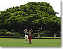 そうこうしているうちにあっという間にパークに到着。大きな木々の大群に感激! おべんと持ってピクニックにでも来れたら楽しそう… 再び車に乗り込み、次はパールハーバーのアリゾナ記念館へ行ってもらおうかと。しかしこのタクシーはメーター制。このままだといくらかかるかわかったもんじゃないわ! とやおら値段交渉。メータータクシーに値段交渉なんて… とみなさんお思いでしょうが、もうお金がなかったの! 結局トータル60ドルで交渉成立。普段ワイキキから空港まで30ドル弱くらいだったと思うので、まぁまぁか?