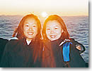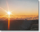 ![]() 眼下に広がる雲をオレンジ色に染めて沈んでゆく太陽 |