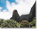 丸一日マウイで過ごせる最終日です。今日は渓谷美が「太平洋のヨセミテ」と呼ばれるイアオ渓谷州立公園へ向かいます。さっきまでの海の景色とは正反対の大きな緑の山々、奇岩、たくさんの花や木々、静かに流れる清流。渓谷までは1時間弱のドライブなのですが、マウイは海と山の両方を手軽に楽しめるし、少し移動しただけで全く違った風景が広がり誰にでも楽しめるオールマイティーーな島だなぁとつくづく感じました。公園の名前にもなっている「イアオニードル」(針のように尖っている山)は圧巻です。谷に雲がかかりやすいそうですが、運よくハッキリとその姿を見ることができ、真っ青な空と目が痛いほどの鮮やかな緑のコントラストは自然が生み出した神秘です。木々が生い茂る中で野生のグァバをかじったり、マイナスイオンを体中にチャージしながら川沿いを歩いたりと、癒しのひとときを過ごしました。