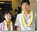 当選の興奮も冷めぬままに、いよいよハワイへ行く日がやってきました。JAL76便でホノルル空港へ到着。迎えに来てくださったハワイの歩き方スタッフのお二人と空港出口にて待ち合わせ、プルメリアのレイをいただきました。記念撮影の後、お二人に送って頂き、ワイキキへ。