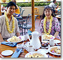 チェックインまでの間、ハイアットの3階にある「テラス・グリル」で遅い朝食をとりました。ここは屋内の席他に、屋外のテラス席があり、海から吹いてくる気持ちのいい風をうけながら、食事やお茶を楽しむことができます。この時4人揃って頂いたのがエッグズ・ベネディクト。丸パンの上にベーコン、半熟卵、その上にはホランデーズソースのかかった美味しい一品でした。