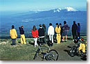 ツアーは午前3時前後にホテルやコンンドミニアムなどでピックアップ。ツアー・オフィスでかんたんなスナックを出してくれます。人数が揃ったら自転車を搭載したトラックと共に、バンに乗って山頂へ。空気が薄いせいで地上で見るよりも数倍鮮やかな朝焼けを堪能したあと、十分に明るくなったらいよいよバイク・ツアーに出発します。出発時はずいぶん冷える(夏場でも10度以下)ので、厚手のジャケットとパンツ、手袋を身につけます。もちろんヘルメットも着用。