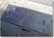 鉄製の溝のフタに描いてある「ゲッコー」 |