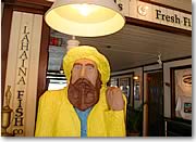 ●映画でトム・ハンクスが座ったベンチ!? そろそろ、ラハイナのメーンストリートであるフロント通りの「ホロホロ」も終わりに近づいてきました。と思ったら、忘れてはならない映画「フォレスト・ガンプ」をテーマにしたレストラン「ババ・ガンプ」が見えてきました。ご存知のように、ここは海老料理専門店で、沈む夕日がきれいに見えることでも定評。お店のすぐ側にあるベンチは必見! 映画で主演のトム・ハンクスがチョコレートを片手にバス停で座っていたシーンを覚えていますか? 何と、そのシーンを再現できるベンチが、コンクリートの靴やカバンと一緒に通り沿いにあるのです。場所は、ババ・ガンプの入口すぐ横。ラハイナの記念撮影にも最適です。 |