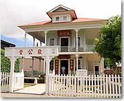 ●一際目を引く「到公堂」 また、少し歩いていると、全く周囲の雰囲気とは異なる中国の寺院「到公堂(ウォ・ヒン寺)」が目に入ってきます。ハワイには中国からの移民も多く、フロント通りに面したこの到公堂はビクトリア洋式を取り入れ、一際目を引く寺院となっています。1階には中国移民たちの歴史を物語る工芸品などが展示され、あの有名な発明家トーマス・エジソンが撮った貴重なフィルムも公開されています。毎日午前10時から午後4時まで開館、入場無料。今でも道教の信徒のお寺として、中国友愛組合の支部としても使われています。 |