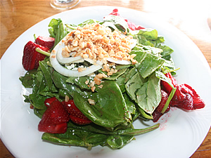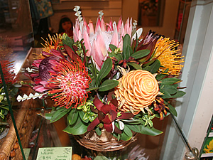 さて、目指すはハレアカラ山麓のふもとにあるクラの町。まずは、可愛い手作り工芸品やプロテアの花などを売っているメルヘンチックな小さなお店、「アップカントリー・ハーベスト」へ。「きゃー、このお人形カワイイ〜」と何を見ても、どれも可愛らしくて困ってしまうほど。それから、同じエリアにあるマウイ産の美味しいお菓子、工芸品やお土産などを売っているショップ、「クラ・マーケット・プレイス」へ。ここにも掘り出し物がいっぱい。特にここで売っているココナツ・キャンディを試食させてもらったところ、激ウマでした。それから、マウイの海と山を見渡すパノラマビューで有名なレストラン、「クラ・ロッジ」へ。ここでは、クラ産イチゴとほうれんそうのサラダをオーダー。パラパラとかかっているマカダミアナッツがこれまた美味しい! 「もう少し、クラにいたいなあ」と名残惜しさを感じつつも、カフルイ方面へと向かいます。 |