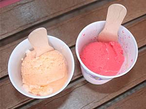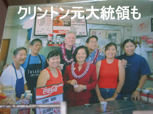 さて、グランド・ワイレアで出会った素敵なロコボーイもおすすめのアイスクリーム屋さん、「タサカ・グリグリ」へ行ってみることに。カフルイ空港から数分の場所にある「マウイ・モール」の中にあります。「グリグリ」というのは、グッディ・グッディ(「おいしいもの」の意)が訛ったものなんだそう。このお店は、もう20年以上も営業しているそうで、地元の人たちに愛されてきたのです。なんと、クリントン元大統領までここに来たんだって… しかも、このお店のロゴになっている、「グリグリ」を持って舌を出している男の子のキャラが何とも懐かしいというか、可愛いではありませんか! そんなことをしているうちに、外にはあっという間に行列ができてきました。やっぱり、すごい人気です。早速、オーダーして食べてみます。アイスクリームとシャーベットの中間のようななんとも言えない食感が新しい感じ。これは、いけるかも… |