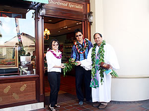 ■パイナップル型のハワイ土産の定番クッキー! 11種類の豊富なフレーバーと可愛いパイナップルの形で、いまやハワイ土産の定番となった「ホノルル・クッキー・カンパニー」のクッキー。ホノルル・クッキー・カンパニーの最新の店舗が、5月8日(木)の朝9時ハイアット・リージェンシー・ワイキキ1階のカラカウア通り側にオープンしました。オープンの際には、カフ・コーデル・ケコア師による、ハワイ産の聖水とティーリーフによるブレッシング(ご祈祷)が行われ、キース・サング社長夫妻やホノルル・クッキー・カンパニー関係者、マスコミ各社が参加し、ハイアット店の開店を祝いました。ハワイアット店は、カラカウア通りに面した便利なロケーション。試食をしながら、ゆっくりとお土産を選んでみませんか? |