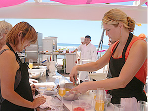 ■美食家をうならせる料理のコラボレーション なかでも14日(土)の午前中は、フロリダ州マイアミにあるOrtanique on the Mileのオーナーシェフであるシンディ・ハトソンのクッキング・クラスが開催され、たくさんのグルメ愛好家たちが集まりました。このクラスでは、シェフ・シンディの指導のもと各グループに分かれた参加者たちが贅沢にもシェフ・ウェインを筆頭とするザ・カハラのシェフ陣にアシストされながら、かぼちゃのビスクとカレー風味のクラブケーキの2品を作るという趣向。晴れ渡った空に青い海をバックとした会場では、終始シャンパンとリリコイフルーツをミックスしたミモザがふんだんに振舞われ、心地よい風が吹き抜けるなか、みな和気あいあいとクッキングと試食を楽しみました。出来上がったディッシュはとってもカラフルでヘルシー! ラテン・テイストならではの、あたり一面に漂うほどよいスパイスの香りが食欲をそそり、まさに開放的なハワイの空の下にぴったりと参加者も大満足の2時間半でした。 ザ・カハラ・ホテル&リゾートでは、2008年12月にも有名シェフを招いたフード・イベントを予定しているとのこと。この時期オアフ島への旅行を予定している方は、ぜひ、ザ・カハラ・ホテル&リゾートを訪れて、グルメに過ごしてみませんか。 |