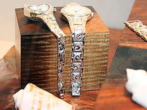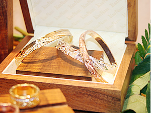 2008年7月8日(火)に高級ハワイアン・ジュエリー専門店「コア・ナニ」第1号店がロイヤル・ハワイアン・センターにオープンしました。 ハワイ語で「勇気」と「美貌」を意味するコア・ナニ。そのロマンチックでエレガントなファッションに現代的な要素が 混ざったジュエリーには、シルバーやプラチナに、ホワイト、イエロー、ピンク、3種類のゴールドにダイヤやオパール、 トルコ石等の宝石が品良くデザインされていて、どれも素敵なものばかりです。一つ一つが、コア・ナニの 伝統工芸職人による手作りのもので、独特な彫り込みのアレンジに特徴があります。ハワイの特質と現代的な要素を組み込んだ「モダン・ハワイ」のテーマに則った店内には、コア・ナニのユニークな作品を更に素敵に演出するために、大胆かつ美的で暖かいイメージを持つ素材が使われています。ハワイの銘木コアを使った壁やオヒアで敷かれた床は高級感に溢れ、アクセントには重厚な雰囲気のニッケルのフレームが使用され、都会的で大胆な雰囲気を演出してます。 「ハワイのインスピレーションを受けたジュエリーは国際的なレベルでも十分通用する都会的でファッショナブルなものであることをお見せしたい」 とコア・ナニのオーナー、ブライアン・ヒー氏はハワイアン・ジュエリーのデザインの良さをアピールしています。商品の多くは、ペアジュエリーにもなりカップルはもちろん、いつも身に着けていたい逸品ばかりです。 |