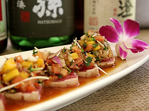 ディナースペシャル:$20 前菜から一品(ニュースタイルまぐろのたたきまたはアヒポキ)、メインから一品(チリ産シーバスの味噌照り焼き、バターフィッシュの味噌漬け、にぎり寿司5つ)、デザートから一品(抹茶アイスクリームまたはブラウニーの天ぷら)