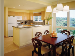 ■お得な宿泊プラン「バリュー・イン・パラダイス」 このプランを利用すると、「アイランドビュー・デラックス・ステュディオ」が1泊$339〜と、通常の宿泊料金$540から約$200も割引になります。 このプランが利用できるのは、2009年4月12日(日)〜 6月19日(金)、8月22日(土)〜11月20日(金)、11月29日(日)〜12月23日(水)(2010年の同じ時期にも適用されます。宿泊料金は少々変わりますのでご注意ください)の期間で、対象となる部屋は「アイランドビュー・デラックス・ステュディオ」、「オーシャンビュー・デラックス・ステュディオ」、「アイランドビュー・デラックス・1ベッドルーム」と「オーシャンビュー・デラックス・1ベッドルーム」の4タイプ。他の割引や特典との併用はできません。このプランの詳細は、こちらのページをご覧ください。 |
