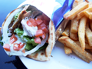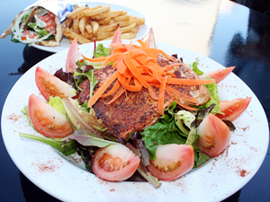 ナイトクラブといえば、おつまみ程度しか食べるものがないと思っていませんか? ここのランチは、スペアリブやフィッシュ&チップスなどのランチ・スペシャル、サンドイッチやサラダ類を中心に、美味しくて本格的なものが揃っています。中でも編集部のおすすめは、ギリシャ風のサンドイッチ「Kronos Gyro(クロノス・イーロと発音)」($7.50)と、サーモンたっぷりのボリュームがあるサラダ「Blackened Salmon Salad(ブラッケンド・サーモン・サラダ)」($8.75)。