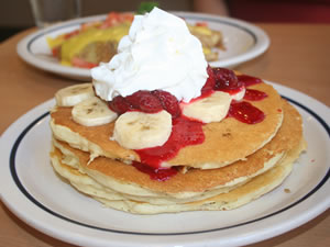 ■慈善団体に寄付するとパンケーキが無料! ハワイでは、チルドレンズ・ミラクル・ネットワーク・ホスピタルズを通じて、寄付金はあのオバマ大統領も生まれた「カピオラニ病院」に寄付されることになっています。 美味しいパンケーキを味わいつつチャリティに参加してみませんか? (編集部注:右上のパンケーキはイメージ写真です。実際に寄付をすると無料になるパンケーキにはイチゴやクリーム、バナナなどのトッピングはありません。) |