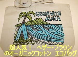 ■オーガニック・コットン製で爆発的な人気のバッグ! 今、大人気のモデル、アリスさんがハワイに来たときに撮影とショッピングをしたお店、ジーニアス・アウトフィッターズのデザイナー、キョウコ・ラストさんから、このショップでも扱っているノースショア在住のアーティスト、へザー・ブラウンによるオーガニックコットン製エコバッグ(約$27相当)を抽選で1名様にプレゼントいたします。 ご当選された方には編集部よりご自宅に郵送させていただきます。どしどしご応募くださいね。 |