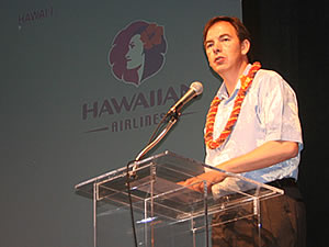 記者会見中、ハワイアン航空の最高経営責任者、マーク・ダンカリー氏は次のように述べました。「韓国−ホノルル路線就航は弊社の国際的なグループネットワーク拡大戦略の一環です。韓国は非常に重要なマーケットであり、昨年から今年の第四半期の間にハワイへの旅行者が倍増しています。また韓国からの旅行者がこれまで必要だった観光ビザが免除になったことも旅行者増加の大きな要因になっています。ハワイアン航空の韓国からホノルルへの直行便の開始により、仁川空港からホノルル空港への出航便の座席数は1年間で54,000以上増加する見通しです」。