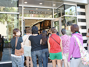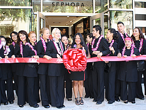 コスメ、スキンケアグッズ、香水、美容器具、ヘアケアなど美に関するありとあらゆるアイテムを揃えたショップ、セフォラが2010年9月3日(金) にワイキキ・ショッピング・プラザに新店舗をオープンしました。開店前にはショップの繁盛を祈願し、地元マスコミや関係者が見守る中、ハワイ式の祈祷式が行われました。開店時には、セフォラスタッフの明るい掛け声と共に赤い大きなリボンが解かれ、ワイキキを歩く観光客の目を引きました。もちろん、開店直後にはすぐに店内はお買い物客でいっぱいとなり、レジに行列が出来るほどの盛況となりました。 ハワイでは3店舗目となる新しくオープンしたワイキキ店は、700平方メートルもの広さを誇り、メイクグッズからスキンケア、ボディケア、ヘアケアなどセフォラのオリジナルブランドを含む200以上のブランドを扱っています。ミネラルファンデで有名なベア・エッセンシャル、セレブに人気のメイクアップ・フォーエバー、ベネフィット、タリナ・タランティーノ、エアブラシのファンデーションで注目のテンプトゥのほか、ミュラドやドクター・ぺリコン、などのドクターズコスメ、フレグランス、ハーカット、サルトラなど人気ブランドの名前を挙げればきりがありませんが、中でもショップのマネージャーがオススメするアイテムを教えてもらいました。