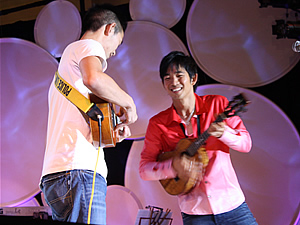 ■IKKOさん、ジェイク・シマブクロ、歌姫ライアテアも登場! ラグジュアリートラベルリテイラー、DFSギャラリア・ワイキキでは2011年1月3日(月)に新春スペシャルイベントとして、ワイキキのメイン通り、カラカウア通り(Lewers Street とRoyal Hawaiian Avenue 間の1ブロック) をクローズして「ブロックパーティ」が行われました。 当日は、ハワイが誇る大人気ウクレレ奏者、ジェイク・シマブクロのCDリリースを記念したライブ演奏、スラックキー・ギターの巨匠ケオラ・ビーマー&ハワイの歌姫ライアテア・ヘルムのライブ、美のカリスマで美容家のIKKOさんによるスペシャルイベント、「きれいになるって楽しい!〜2011年も女子力アップ!〜」が開催されました。 ジェイク・シマブクロの新しいCD、「ピース・ラブ・ウクレレ」のリリースを記念して行われたライブでは、ジェイクがステージの最前列近くに座り込み、客席に熱い視線を送りながらフレディ・マーキュリーの曲、「ボへミアン・ラプソディ」を演奏し、観衆の興奮は最高潮に。また、弟のブルース・シマブクロも途中から出演し、大盛り上がり。 美のカリスマ、IKKOさんのステージは女子力をアップしてくれるコスメについてのトークのほかに、「ゴージャスゥ〜!」、「どんだけ〜!の法則」、「どうにもとまらない」などの歌を披露。「ゴージャスゥ〜!」では、ハワイでのお正月ということで選んだという透け感のある青い着物をまとい、その後は鮮やかなシルクシフォンが揺れるイエローのドレスで再登場。華やかなパフォーマンスに日本からのツーリストだけでなく、ハワイ在住者や世界各国からの旅行者も大興奮。 また、会場では、ロイズやアラン・ウォンズ、アズーア、銀座梅林、チャイズ、ノブなどハワイの有名レストランによる食べ物のブースが設けられ、大変賑わいました。