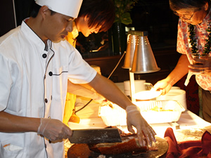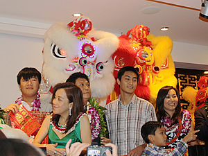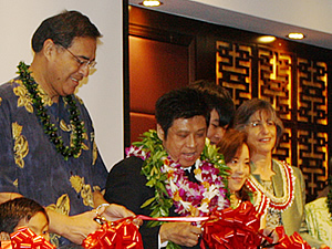 ハワイ最大のショッピング・センター、アラモアナセンター4階のホオキパ・テラス内に、香港からやって来た本格中華レストラン「ジェイド・ダイナスティ・シーフード・レストラン」がオープンし、1月18日(火)に関係者を招いてグランド・オープニング・パーティが開催されました。 まずは、前ハワイ州知事のリンダ・リングル氏や、前ホノルル市長のムフィ・ハネマン氏、地元の中国系団体の代表者やビジネス関係者などの来賓とレストランの経営者家族や関係者がずらりと舞台に上り、香港スタイルのテープカット(リボンカット)の儀式を行いました。その後、同店オーナーの挨拶に続き、中国の獅子舞と香港からやって来た龍踊りの一団が乱入、明るく賑やかに開店を祝いました。店内にはミス・ハワイUSAや水仙の女王などの姿も見られ、華やかな雰囲気に包まれました。 店内では、「さすが香港!」といった感じの点心や豚の丸焼き、エビ料理、肉料理、麺類などが次々と振舞われ、遅くまで賑わいました。 高級感漂う店内には個室が多数設えられているため、10人ほどのパーティも可能。10人用のパーティメニューも多種用意されています。ハワイでの結婚式の2次会などにも良さそうですね。 |