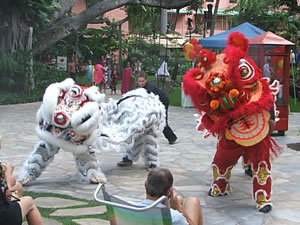 ■ロイヤル・ハワイアン・センターにも獅子登場! 邪気を追い払い福をもたらす象徴として古くから中国に伝わる獅子が、鉦と太鼓のリズムに合わせて勇壮な舞を披露します。ハワイで52年の歴史を誇るLung Kong Physical Culture Clubによるパフォーマンスを楽しんでみませんか? 因みにライオン・ダンスがやってくると、地元の人々は専用の袋に$1札を入れて、ライオンの口から食べさせる習慣があります。日本の獅子舞は頭を噛まれますが、中国式の場合手が噛まれるとは面白いですね。