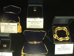 ■ハワイアン・ジュエリー好きな人必見! 1800年代、家内産業として始まり、時代や技術の進化とともにさまざまに形を変え、世界中の人々に愛されるようになったハワイアンジュエリーは、ハワイ王朝、特にリリウオカラニ女王に大きな影響を受けています。ミュージアムには、女王が身につけたハワイアンジュエリーのレプリカや歴史資料、19世紀の工房を再現した展示などが公開されています。 ミュージアムは、毎日午前9時から午後6時まで一般に公開されています。また平日は午前10時からと午後2時からの一日2回、ガイド付きツアー(有料)を行っています。同ミュージアムについての詳細は、(808)924-7972(ext.27)まで。 |