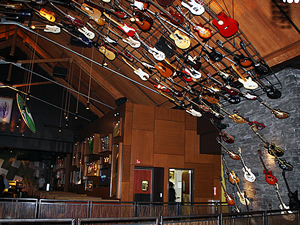 ■人気ミュージシャンのライブで大盛り上がり! お店の外に設けられたステージでは、午後6時より開店のセレモニーが行われ、ギターが派手に叩き割られました。店内では、様々なドリンクやフード、デザートが振舞われ、人気ミュージシャンのアヌヘア、ジョン・クルーズ、マカナ、ヘンリー・カポノによるライブが行われました。 長い間、カピオラニ大通りとカラカウア大通りの角で営業してきたハード・ロック・カフェですが、昨年カラカウア通りとビーチウォークの交わる現在地に移転。ソフトオープン後、昨日のグランド・オープニングを迎えました。広々とした2階建ての店内の1階は、Tシャツやマグカップなどのロゴグッズが売られ、2階にはオープンエアのテラス、バーカウンター、客席、そしてライブ用のステージが設えられています。なんといっても圧巻なのは、1階から2階の吹き抜け部分からテラス部分にかけて、壁と天井にたくさん飾られたギターと、壁を覆うミュージシャンたちが実際に使っていたギターや衣装の数々。 ロック・ミュージックが鳴り響く広々とした店内で、素敵なひとときを過ごしてみませんか? |