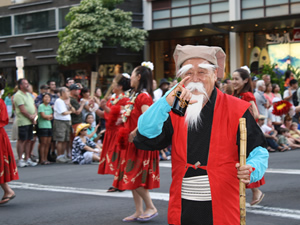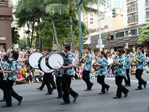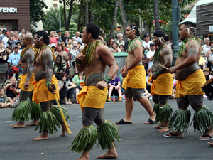 アジア太平洋地域とハワイの文化交流や親睦を目的としたイベント、「第17回ホノルルフェスティバル」が、3月11日(金)〜13日(日)の3日間にわたり開催されました。 開催を目前とした日本時間の3月11日(金)の午後2時46分ごろ(ハワイ時間の10日午後7時46分)、マグニチュード 8.9を記録する地震が東北地方太平洋沖で発生しました。それに伴い、ハワイでは津波警報も出されました(翌日解除されています)。ホノルル・フェスティバル出演のために、たくさんのパフォーマーや係員らが、日本からホノルル入りしていましたが、「ここまで来た以上はやり抜く」との強い意志でフェスティバルは決行されました。予定されていた新潟県の長岡花火は中止になったものの、アラモアナセンター、ワイキキ・ビーチ・ウォークの特設会場でのパフォーマンスやハワイ・コンベンションセンターでの展示、クラフト・フェアなどに加えて、カラカウア通りで行われる壮大なグランド・パレードを見物するため、たくさんの人々が集まり、心からの拍手を送りました。 また、急遽、ミュージシャンのジェイク・シマブクロさんが呼びかけて、13日(日)の午後8時より、東日本大震災救済のためのチャリティ・コンサートがワイキキ・ビーチ・ウォークで行われました。出演ミュージシャンは、平井大さん、マノアDNA、ジェイク・シマブクロさんの3組。会場脇には募金箱が設置され、$40以上募金した人には、ジェイク・シマブクロまたはマノアDNAのCDがプレゼントされました。自らの祖先が福島県出身だというジェイクは、「がんばって日本!」と力強いメッセージを送り、思いのたけをこめてウクレレを演奏しました。直前にアナウンスされたチャリティ・コンサートではありましたが、会場にはハワイ在住者をはじめ、たくさんの人々が集まり、募金箱に募金する人々の長い列ができました。 |