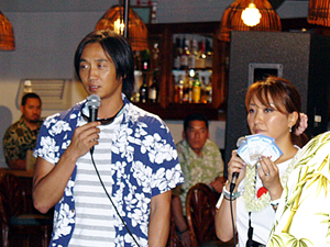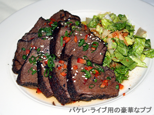 ■3月はパケレ・ライブでチャリティに参加しよう ミュージシャンのパリと内田佐知子さんご夫婦の司会で、3月17日に行われた第1回目のコクア・ジャパン・ベネフィットに出演したのは、ナタリー・アイ・カマウウ、ウォルト・ケアレ、クウイポ・クムカヒ、ケネス・マクアカネ。多数の人々が集まり美しいハワイアン音楽を楽しんだほか、会場ではコアロハ・ウクレレのチャリティ・オークションも行われました。出演ミュージシャンのCDが、寄付した人に配られたほか、マルラニ・ハワイの絆ミサンガが提供され、オーナーの城咲翔さんも会場で寄付を募りました。また、アロハ・フォー・ジャパンのアロハTシャツや、ラニストーンの希望の石が入ったブレスレットも用意され、寄付をした人々に渡されました。 3月24日(木)のコクア・ジャパン・ベネフィットには、ハーブ・オオタJr.の出演が予定されています。このライブの模様は、パケレ・ライブのウェブサイトで同時中継されるほか、ハワイのローカル・テレビ局OC16でも放映されます。入場無料。パケレライブ用にププ(おつまみ) やドリンクが多数用意されていますので、個別にオーダーすることもできます。 震災の被害にあわれた人々の救済のために今できること、それはドネーションです。ハワイの皆様、ぜひ3月はパケレ・ライブに足を運んでみてください。 (編集部より:このたびの東日本大震災による犠牲者の皆様に哀悼の意を表すとともに、被災者の皆様に心よりお見舞い申し上げます。一刻も早く状況が改善され、復興の道が開けますことを願ってやみません。) |