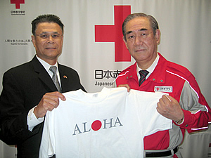 ハワイが州を挙げて取り組む、東日本大震災被災地救済キャンペーン「アロハ・フォー・ジャパン」を通じて集まった寄付金が、震災より1ヵ月で$3ミリオン(約2億5千万円)に上ったことが発表されました。 アロハ・フォー・ジャパンの窓口をつとめるハワイ日米協会(JASH)の、エド・ホーキンス専務理事は、今週はじめに急遽東京を訪問し、集まった義援金のなかから、まずは$1ミリオン(約8,300万円)の小切手を、日本赤十字社へ寄付しました。
