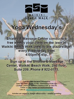 Shiatsu & Massage Center Offers Free Yoga Lessons at Waikiki Beach Walk