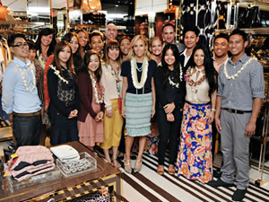 アメリカの女性デザイナーが始めた人気ブランド「トリー・バーチ(Tory Burch)」のロイヤル・ハワイアン店で、1月18日(水)にグランド・オープニング・イベントが行われました。昨年の11月初旬より、営業ははじまっていたものの、今回はデザイナーのトリー・バーチさん自身も来店し、賑やかなグランド・オープニングとなりました。世界で58店目、オアフ島では2店目となるワイキキ店は、カラカウア通りに面した2階建て2,800平方フィートのフロアに、アパレルから、シューズ、ハンドバッグ、アイ・ウェア、ジュエリー、レザー、小物まで、トリー・バーチの全コレクションが揃っています。 この日のグランド・オープニング・イベントは、ホノルル美術館と共同で行われ、当日の売り上げの20%がホノルル美術館に寄付されました。店内には、トリー・バーチのファンが続々と集まり、カクテルやププで楽しいひと時を過ごしました。エレガントなトリーさんの姿には、皆感激の様子でした。 生まれ持ったセンスの良さを活かし、アートや写真、映画、音楽や旅行からインスピレーションを得ているトリーさんのコレクションは、グラフィックプリントや大胆なデザインや色使い、ユニークなディテールが特長です。ブレーク・リブリーやオプラ・ウィンフェリー、リース・ウィザースプーン、ハル・ベリー、ユマ・サーマン、ヒラリー・スワンクなどセレブリティにもファンが多いそうですよ。現在、トリーバーチは全米、ヨーロッパ、アジアに広がるブティック53店舗と世界500カ所のデパートや専門店で販売されているそうです。 (写真提供:Jose Rodrigues) |