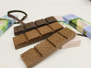 ■ハワイ産カカオの馥郁とした風味 カカオの風味が直接感じられる上品な味わいのチョコレートは、おみやげにするととても喜ばれそう。ハワイを感じさせてくれる素敵なパッケージも魅力的ですね。詳しくはマリエ・カイ・チョコレートのホームページをご覧ください。 |