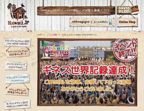 7月28日(土)横浜で行われたイベント「ウクレレピクニック」にて、ギウクレレ同時演奏に2134人が参加し、ギネス世界記録を樹立しました。 当日は猛暑にも関わらず大勢の人々がこのイベント参加に駆けつけたそうです。また先週末の横浜では同イベントのほか、日本最大級のハワイアンイベント「アロハヨコハマ」も行われ、ハワイのワークショップやカルチャー体験、フードなどを多くの人が楽しんだそうです。