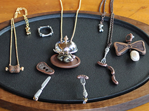 キュートなアクセサリーがいつもいっぱい揃っているアクセサリーブランド「Q-pot.」に、8月22日(水)から新作アクセサリー・コレクション、「ステーキな晩餐会」が登場します。 このコレクションは、「Qの館」で毎晩行われている摩訶不思議な晩餐会がテーマ。リボン(Ribbon)と骨(Bone)をモチーフにしたリボーン(Ribone)シリーズと、ステーキやソーセージをモチーフにしたミート(Meat)シリーズがあります。思わず微笑んでしまうような、ウィットに富んだデザインはQ-pot.ならではですね。 ユニークなモチーフを用いながらも、日本ならではのクラフトマンシップを感じさせる、シックで高級感あふれるコレクションは、この秋のマストアイテムといえそうです。 |