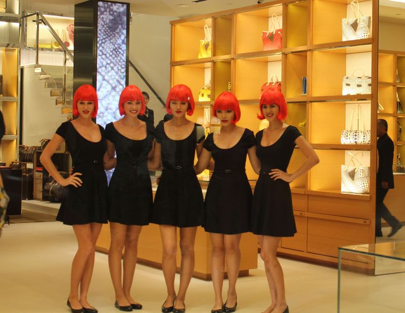 アラモアナセンターにあるブティックでは発売開始の夕方6時になると、草間彌生さんを模した、赤いヘアのモデルさんが登場!このモデルさんと記念写真を撮る方や、さっそくコレクションを購入する方などで店内は大賑わいでした。 草間彌生さんといえば、カラフルな水玉模様を使った作品で有名。その水玉と、ルイ・ヴィトンのアーティスティックディレクターを務めるマーク・ジェイコブスのフェミニンなデザインがマッチ。 日本を代表するアーティストとのコラボレーションですから、ぜひチェックしてみてくださいね。