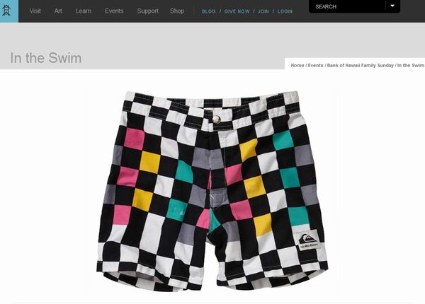 ホノルル美術館を一般に無料開放しようと、バンクオブハワイのはたらきかけで2004年から始まった「バンクオブハワイ・ファミリーサンデー」。毎月第三日曜日に開かれるイベントで、9月は16日(日)に「in the Swim(イン・ザ・スイム)」をテーマに開催されます。 現在開催中の「ボードシャツ」の展示を楽しみながら、子供たちがマーカーやクレヨンを使って自分のボードショーツをデザインしてみよう、というイベントです。水着の型のタグやクッキーに思い思いにデザインして、アートに触れる企画です。 ホットドッグなどの軽食もあったり(有料)、家族みんなで楽しめる日曜日のイベントです。10月にはハロウィン、12月にはマジックなど毎月楽しい企画が用意されています。どうぞお見逃しなく! |