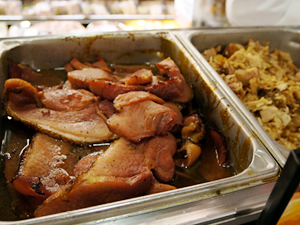 ハロウィンが終わるとハワイではいっきにホリデー気分が盛り上がります。11月12日(月)、ホールフーズのカイルア店にて、スタッフが作るホリデー・シーズンのオリジナルレシピの試食会が開催されました。感謝祭やクリスマスの食材で彩られた店内を端から端まで歩きながら、料理だけでなく、ワインやデザートまで試食しました。 最初のお皿は苺とホウレンソウのサラダ。香ばしいマックナッツと、酸味のきいたドレッシングといっしょに食べる苺の甘みがほんのりとします。サラダの次は前菜、ホウレン草とアーティチョークと蟹のディップ。蟹の風味がたっぷりと味わえました。そして、ホリデーのディナーにはかかせないローストターキーとハム。ホールフーズの七面鳥は放牧で抗生物質、ホルモン剤など一切使用していないので安心して食べる事ができますね。また、骨のない七面鳥や鶏肉なども売っているそうです。骨が苦手だという方には良い情報ですね。 最後のお皿はローストターキーには欠かせない、グレービーと七面鳥の中に入れるパンなどを使ったスタッフィング。七面鳥よりこのグレービーやスタッフィングが目当ての人も多いですね。そのメインディッシュの横に添えるのは人参のすりおろしたもの、エンドウマメ、グリーンビーンズ、マッシュドポテト、かぼちゃなど、秋の収穫を祝う食材です。デザートはホイップクリーム添えのパンプキンパイ。感謝祭当日はメイド・イン・ハワイの焼き立てのパイも販売するそうです。 飲み物はホールフーズお勧めのスパークリングワインやワインを始め、ホリデイシーズンに人気のミントやスパイシーな味のお茶、オーガニックの牛乳や豆乳で作られたエッグノッグ(牛乳と卵をベースにした温かい飲み物。ラム酒などのお酒を入れることもある)もふるまわれました。 通常なら水曜日に演奏するミュージシャンもバーでハワイアン音楽を奏で、訪れる人を、味覚視覚だけなく、聴覚でも楽しませていました。 ホリデー・ディナーを手作りするのも楽しいですが、大家族や来客の多い家庭、日本から来て、本場の感謝祭やクリスマスのディナーを味わいたい方には電話かHPからこれらの料理を注文することもできます。ホールフーズのどの支店でもピックアップが可能だそうです。 |