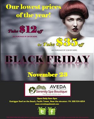 Black Friday Information of Serenity Spa at Outrigger Reef on the Beach