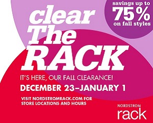 ワードエリアにある「ノードストロームラック」で12月23日(日)から2013年1月1日(火)までクリアランスセールが開催されます。最大割引率はなんと75%で、すべての秋物商品が対象です。