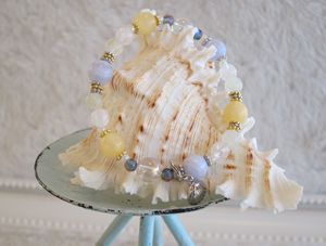 ハワイ発の天然石ブランド「マルラニ・ハワイ」のインターナショナル・マーケット・プレイス店では、毎月スタッフがテーマを決めたオリジナル限定商品が販売されています。3月の限定商品は「Auli’i ~優雅~」」です。 淡い黄色のアラゴナイト(魅力や潜在意識を高める)、ベビーブルーのブルーレース(幸運)、濃いブルーのコスモオーラ(自己表現・エネルギーの活性化)を基調で、幅広い世代の女性に似合うデザインですね。その他にも、サーペンティン(穏やかな心)、レインボーオーラ(生命力のアップ)、クラック水晶(気の流れを調和)を使用し、春からの新生活準備にも最適だそうですよ。販売はインターナショナル・マーケットプレイス店のみ、3月だけの限定販売で、お値段は $49です。 どのようなタイプの時計やアクセサリーにもあうように、ゴールドとシルバーのコンビタイプのパーツが使用されているのも嬉しいですね。お土産にしてもよろこばれそうですよ。 |