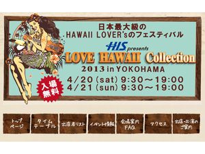 横浜大さん橋を舞台にハワイが大好きな人々が集う、日本最大級のイベント「Love Hawaii Collection 2013 in Yokohama」が4月20日(土)と21(日)に開催されます。 朝から夜までフラショーやハワイアンエンターテイメントが披露されたり、ハワイアングッズのアイテムを購入できるブースが出店するなど、この週末はハワイ一色になって大盛り上がりの予感です。 ●Love Hawaii Collection 2013 in Yokohama |