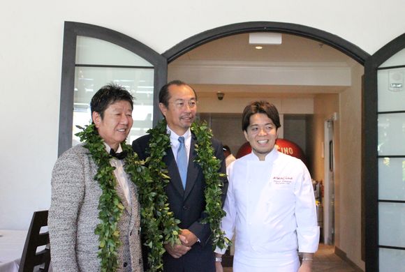 日本の著名人にもファンが多く、連日たくさんの観光客が訪れる人気イタリアンレストラン「アランチーノ」。6月18日(水)、待望の新店舗がザ・カハラ・ホテル&リゾートに誕生しました。グランドオープンに先駆けて、6月17日にメディアや関係者を招いて食事会が催されました。 にぎやかなワイキキとは異なり、各国のセレブがゆっくりと余暇を過ごす高級リゾート、カハラにあるレストランとあって、提供するのはコース料理のみ(5コースは$100、4コースは$85、ランチはアラカルトもオーダー可能)。前菜からメイン、デザートまで各5種類ずつ用意されたメニューから好きなものを選べるプリフィクスコースで、日本人エグゼクティブシェフが新鮮な地元野菜や魚介をふんだんに使って作ったメニューは、見た目にも美しくどれも日本人好みの繊細な味わいです。
